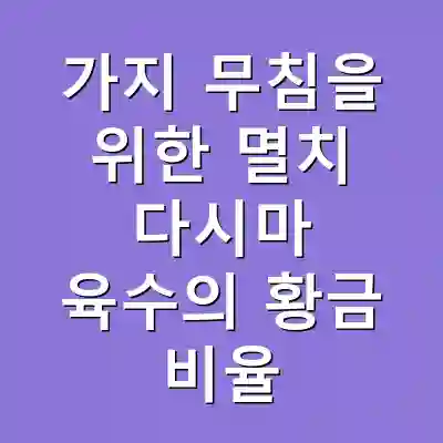 가지 무침은 멸치 다시마 육수를 통해 더욱 맛있고 깊은 풍미를 느낄 수 있습니다. 이 글에서 소개한 황금 비율과 방법을 기억한다면, 누구나 손쉽게 맛있는 가지 무침을 만들 수 있을 것입니다. 다양한 요리에 활용 가능한 멸치 육수는 주방의 필수 아이템이 될 것입니다.