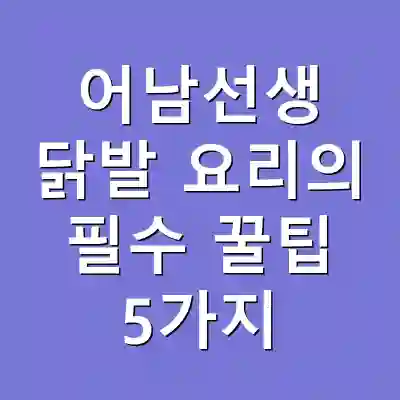 닭발 요리는 많은 사람들에게 매콤하고 쫄깃한 식감으로 사랑받고 있습니다. 특히 어남선생의 닭발 요리는 그 조리법이 간단하면서도 맛이 뛰어난 것으로 유명합니다. 오늘은 어남선생의 닭발 요리를 더욱 맛있고 쉽게 만들기 위한 다섯 가지 필수 팁을 소개하겠습니다. 이 글을 통해 닭발 요리를 완벽하게 마스터하는 데 필요한 정보를 얻을 수 있습니다.