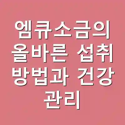 엠큐소금은 최근 건강 관리에 많은 관심을 받고 있는 제품으로, 다양한 질병 예방과 관리에 도움을 줄 수 있는 성분들로 구성되어 있습니다. 특히, 엠큐소금은 몸의 염증을 줄이고 면역력을 높이는 데 큰 효과를 발휘합니다. 그렇다면 엠큐소금을 올바르게 섭취하는 방법은 무엇일까요? 이 글에서는 엠큐소금의 섭취 방법과 그로 인해 얻을 수 있는 건강 이점에 대해 자세히 알아보겠습니다. 이 글을 통해 엠큐소금을 활용하여 건강을 챙기는 방법을 익힐 수 있습니다.